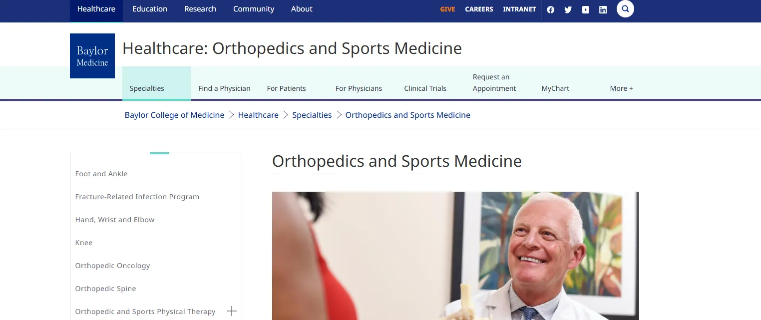 2. Baylor College of Medicine Orthopedics and Sports Medicine