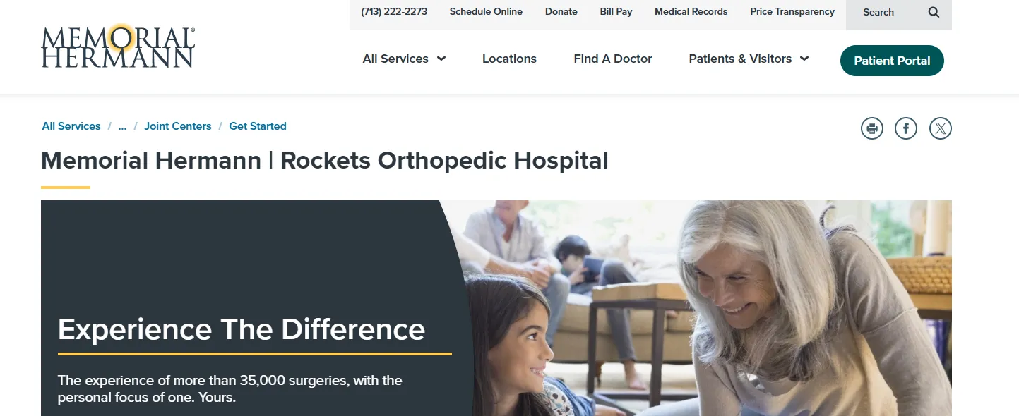 Memorial Hermann Rockets Orthopedic Hospital | Dedicated orthopedics hospital | No | Part of a large health system | Rehab focus, robotic-assisted surgery |