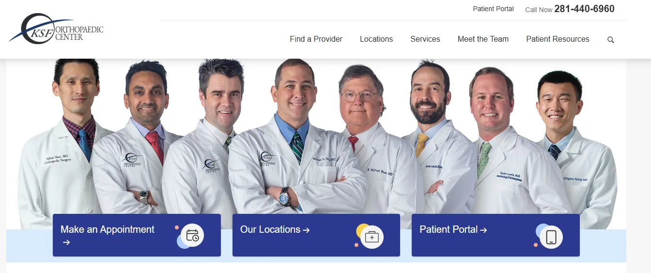KSF Orthopaedic Center has served the Houston community since 1976, earning a reputation for personalized care. It is known for its commitment to nonsurgical solutions whenever possible. It offers a full suite of services, including sports medicine, joint replacement and on-site physical therapy. The team includes board-certified orthopedic surgeons and related specialists.